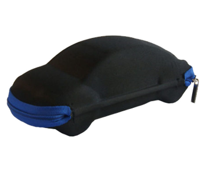 Praktické a pevné, detské puzdro v tvare auta so zatváraním na zips, vhodné na detské slnečné i dioptrické okuliare. Puzdro sa dá využiť aj ako peračník pre deti. Rozmery: 165 x 70 x 45 mm